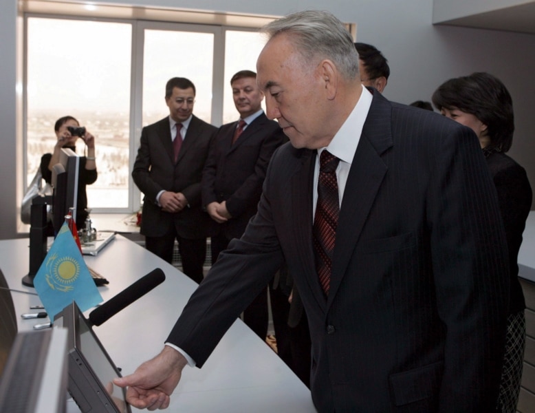 Kazakh President Nazarbaev starting the Atasu-Alashenkou pipeline between his country and China on 15 December