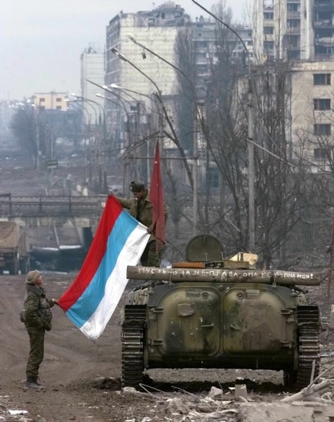 February 2000: Russian troops capture Grozny and much of the city is razed.
