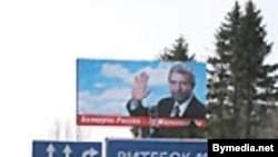 An election billboard showing the leading opposition candidate Alyaksandr Milinkevich (file photo) (Bymedia.net) 23 February 2003 -- European Union officials have denied that EU-funded news programs to be broadcast in Belarus ahead of next month's presidential election will be propaganda, arguing that the broadcasts are necessary because of the tight controls imposed on the media in Belarus.