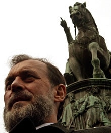 Serbia-Montenegro Foreign Minister Vuk Draskovic at a ceremony on March 9 to march the fifteenth anniversary of the first opposition demonstrations against Milosevic. (Source: epa.)
