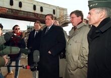 November 21, 1995: Following NATO air strikes against Bosnian Serbs, Milosevic joins the presidents of Bosnia and Croatia in peace agreement at U.S.-sponsored talks at Dayton, Ohio.