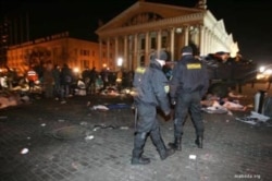 THE POLICE MOVE IN: RFE/RL's Belarus Service filed these images from October Square in the early morning hours of March 24. All photographs were taken by Yuliya Darashkevich.