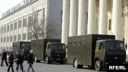 Busloads of police entered streets near the square hours before the rally was due to start, and police vans line parts of central Minsk.