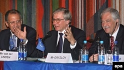 PACE head Van der Linden (center) on May 29 with Russia's Sergei Lavrov (left) and Boris Gryzlov (epa) PRAGUE, May 29, 2006 (RFE/RL) -- As the new president of the Council of Europe, Russia today hosted a delegation from the body's Parliamentary Assembly (PACE). The Russian Foreign Ministry has already indicated it will use its chairmanship to fight what it calls Western "double standards" regarding Russia and other former Soviet republics.