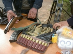 Arms and leaflets allegedly confiscated from Hizb ut-Tahrir members in Kyrgyzstan in May (RFE/RL)