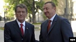Ukrainian President Viktor Yushchenko (left) with his Azerbaijani counterpart Ilham Aliyev in May (epa) September 7, 2006 -- Ukrainian President Viktor Yushchenko arrived in Baku today for talks on economic cooperation.