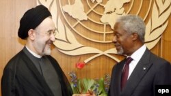 A UN spokesman said that during the private meeting at UN headquarters on September 12, Annan urged Khatami to help promote further dialogue between Iran and the United States.