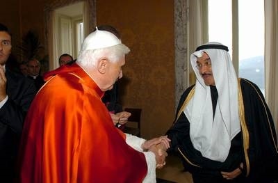 Pope Benedict (left) meeting an unidentified Muslim dignitary at his personal residence in September (epa)