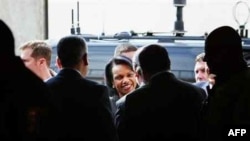 Rice arrived in Israel later in the day, ahead of talks with Israeli and Palestinian officials aimed at reviving the peace process there. Rice was scheduled to meet with Israeli Foreign Minister Tzipi Livni.