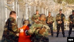 U.S. troops escort a detainee at Guantanmo Bay, Cuba (file photo) (epa) February 28, 2007 -- Human Rights Watch is asking U.S. President George W. Bush to disclose the fates of all terror suspects held since 2001, including at least 16 it believes have been locked up in secret CIA facilities.