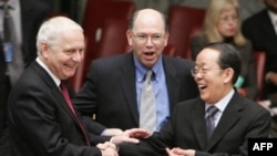 After the vote, British UN Ambassador Emyr Jones Parry read a statement on behalf of the five veto-wielding members of the Security Council -- Britain, China, France, Russia, and the United States -- plus Germany and the high representative of the European Union.