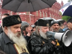 Orthodox believers and nationalists heckling a gay-rights rally in Moscow in May 2006 (RFE/RL)