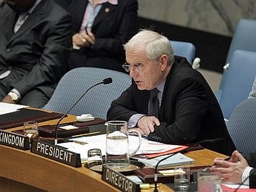 Security Council President Emyr Jones Parry of Britain leading the discussion on April 3 (official site)