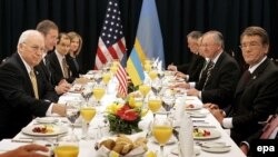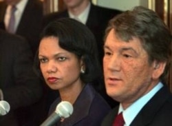 Yushchenko (right) with U.S. Secretary of State Condoleezza Rice in Kyiv in December 2005 (epa)