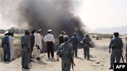 Two Afghan civilians were reported killed when a bomb targeted a police vehicle in southeastern Paktiya Province.