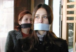 Ukrainian journalists demonstrating against censorship in December 2006 (RFE/RL)