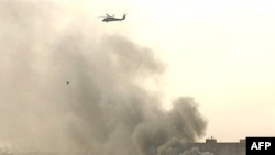 A U.S. helicopter flying over Baghdad's Green Zone (file photo) (AFP) July 12, 2007 (RFE/RL) -- A White House report released today gives a mixed assessment of progress made by the Iraqi government on meeting political and security goals set by the United States.