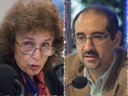 Esfandiari (left) and Tajbakhsh before their arrests (RFE/RL)He added, "I was giving consultations to Soros about the social and political affairs of Iran.”The narrator described the pair’s remarks as “revelations.”