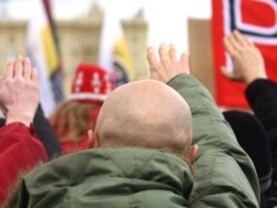 The second man drops forward into a makeshift grave after being shot in the head. The video ends with two masked men raising their arms in a Nazi salute.