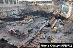 Heavy digging equipment and machinery at the southwestern corner of the WTC development site.