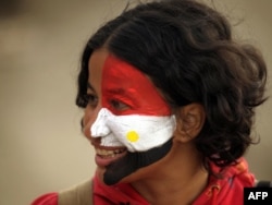 A woman with her face painted in the colors of Egypt's flag takes part in the antigovernment protests.