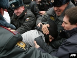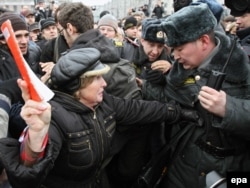 In many cities today -- including Moscow, Kaliningrad, and Vladivostok -- local authorities had banned the rallies, setting the stage for confrontations between demonstrators and police.