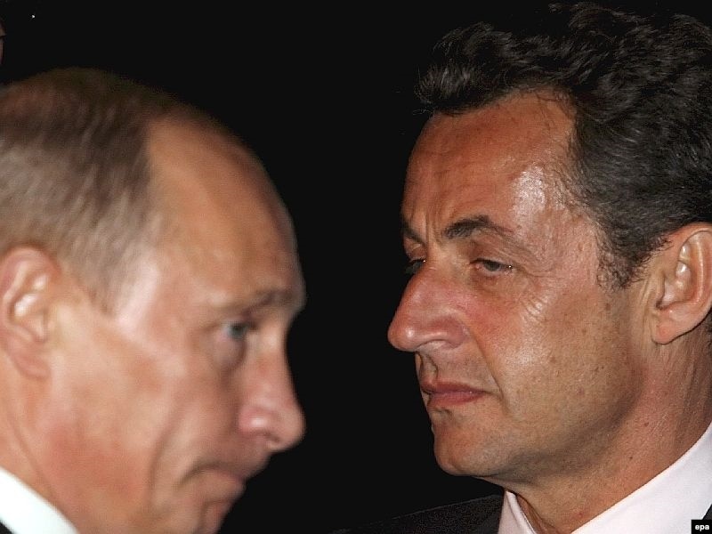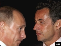 Russian Prime Minister Vladimir Putin (left) with French President Nicolas Sarkozy -- who will blink first?