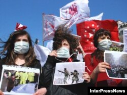 Young people criticizing Saakashvili four months after police forcibly dispersed a crowd in November 2007.