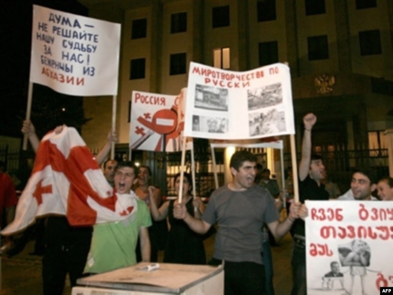 The contrast of hope and despair that was evident among the protesters at the Russian Embassy reflected the conflicting opinions of Georgians in general, as the conflict between Tbilisi and Moscow enters a new -- and potentially very dangerous -- phase.