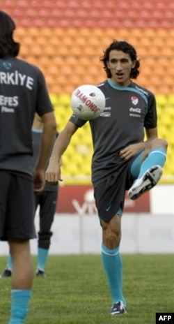 Members of the visiting Turkish national football team practice in Yerevan on September 5.