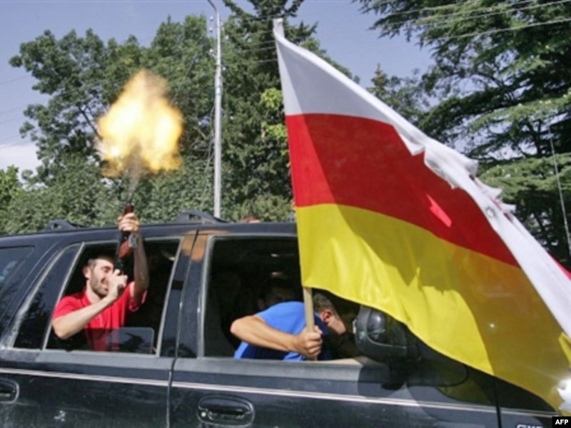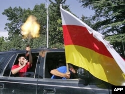 In the South Ossetian capital, Tskhinvali, some 500 people gathered in the central square to celebrate. The air was filled with the deafening roar of people firing Kalashnikov rifles and antique hunting rifles, Reuters reports. Other people were waving the flags of South Ossetia and Abkhazia, hugging each other, and chanting, "Long live South Ossetia."