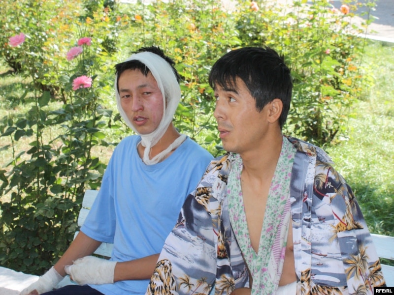 Two young men, one an ethnic Kyrgyz and the other an ethnic Uzbek, recover in an Osh hospital from injuries sustained in the ethnic violence in June.