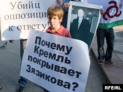 Demonstrators following Yevloyev's death: "Why is the Kremlin protecting Zyazikov?"