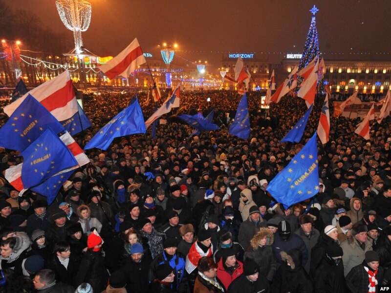 Tens of thousands of protesters took to the streets of Minsk after the disputed presidential election on December 19.