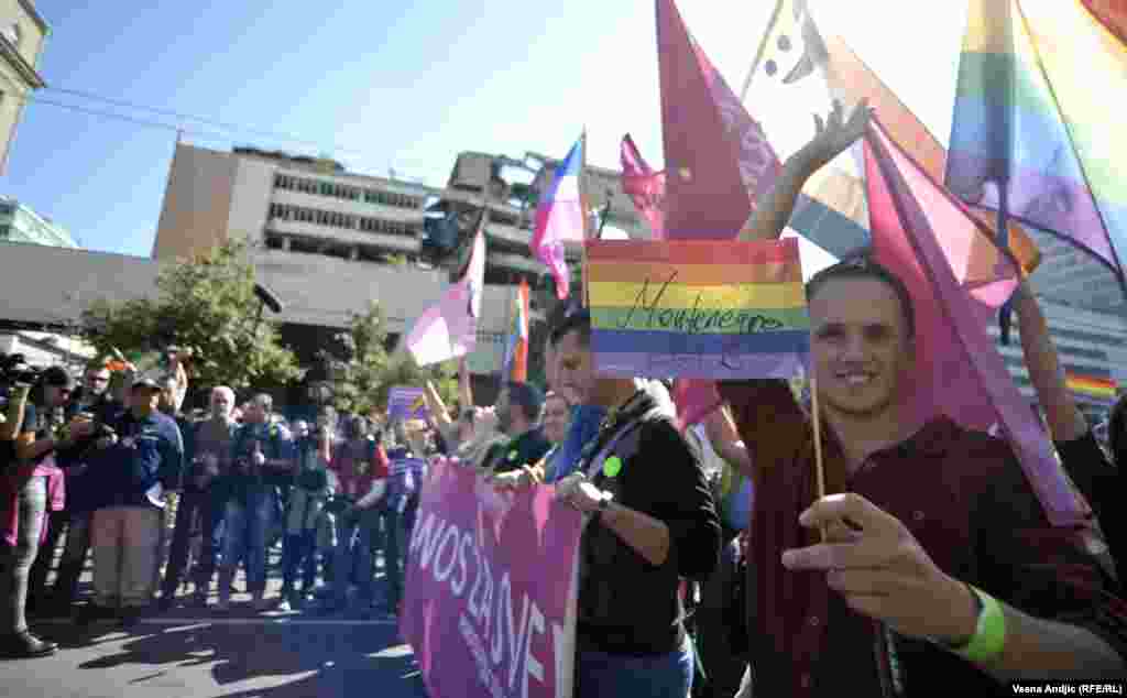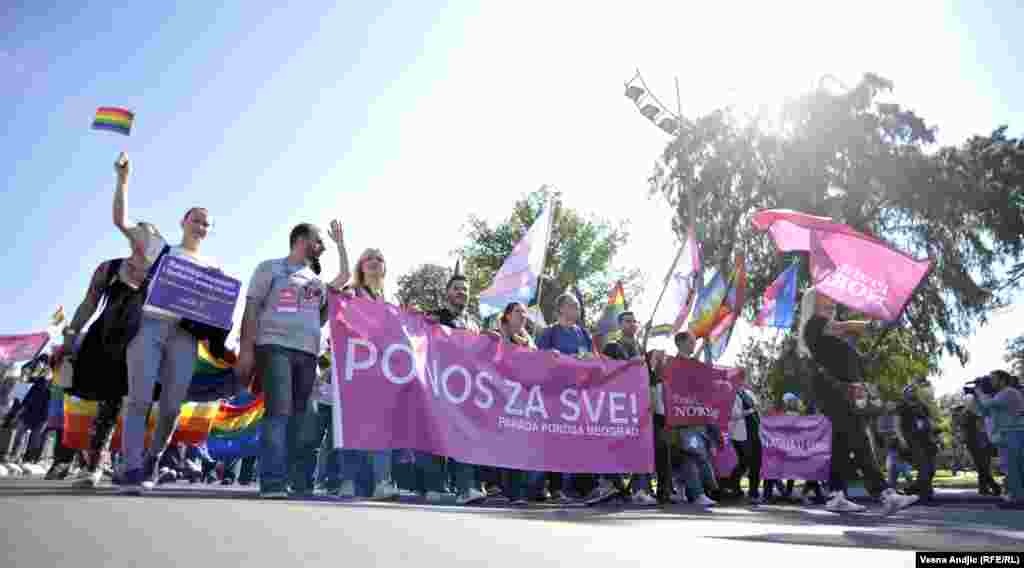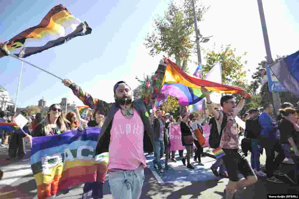 The two-kilometer march began in front of the main government building in Nemanjina Street and passed along Kneza Milosa Avenue and by parliament before ending in front of Belgrade City Hall.