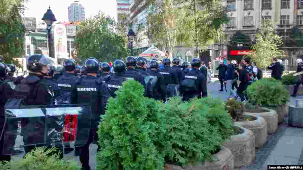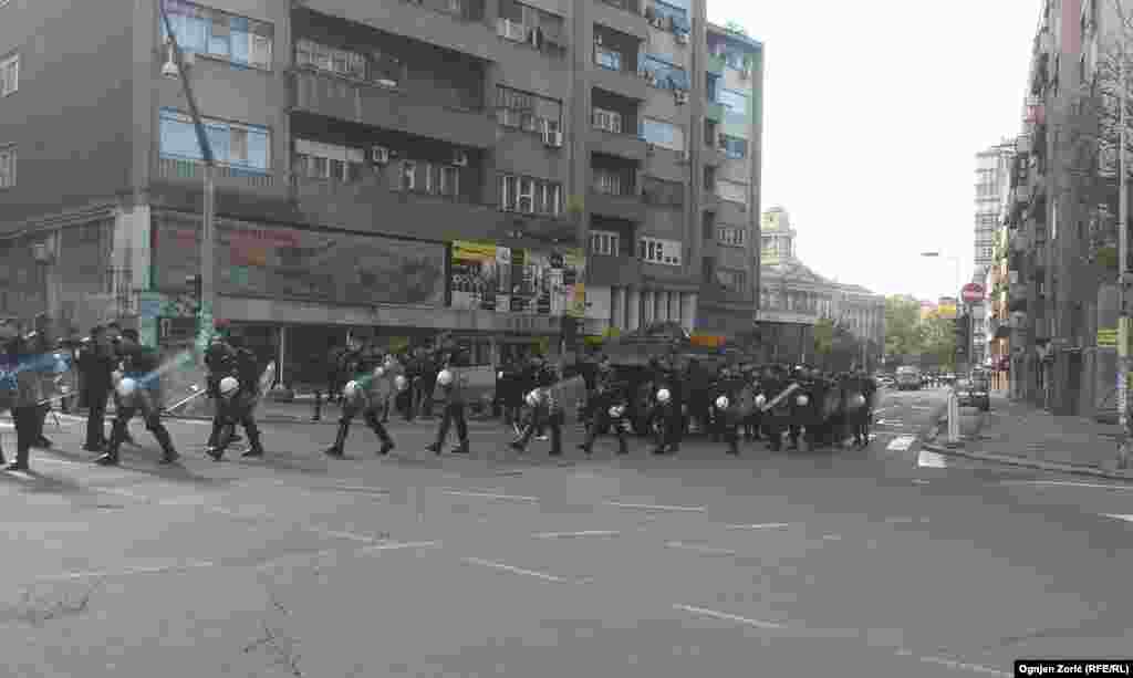 Policija zaustavlja grupu protivnika Parade ponosa u Knez Mihailovoj ulici