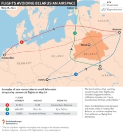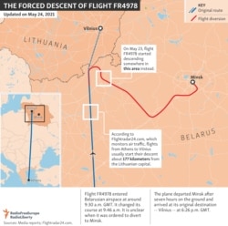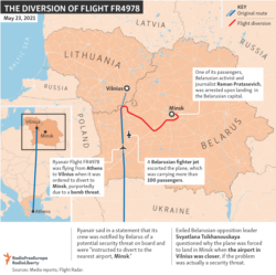 Belarus sparked international outrage after it forced a Ryanair flight traveling between EU members Greece and Lithuania to land on May 23 in the Belarusian capital, Minsk, where Belarusian journalist and opposition activist Raman Pratasevich and his girlfriend were detained. Some EU leaders called the incident "state hijacking."