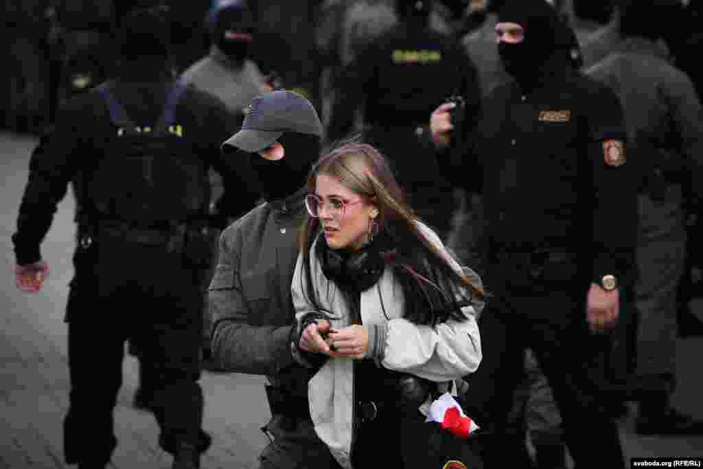 Belarusian police have detained dozens of protesters in Minsk, as hundreds of people marched through the capital demanding the resignation of President Alyaksandr Lukashenka.