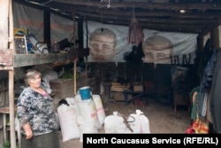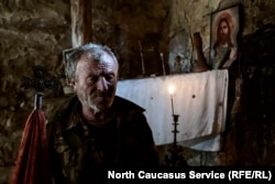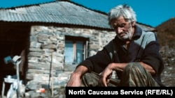 Kazbeg sits in front of his home.