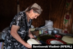 Kazbeg's wife is making cheese.