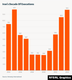 Bahreini noted that while the world is moving toward abolishing the death penalty, a handful of countries are driving the surge in executions -- including Iran, which accounted for 64 percent of executions in 2024.