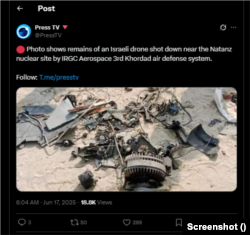 On June 17, Press TV posted a photo of a drowned drone with the caption: "Israeli drone shot down near the Natanz nuclear site.”