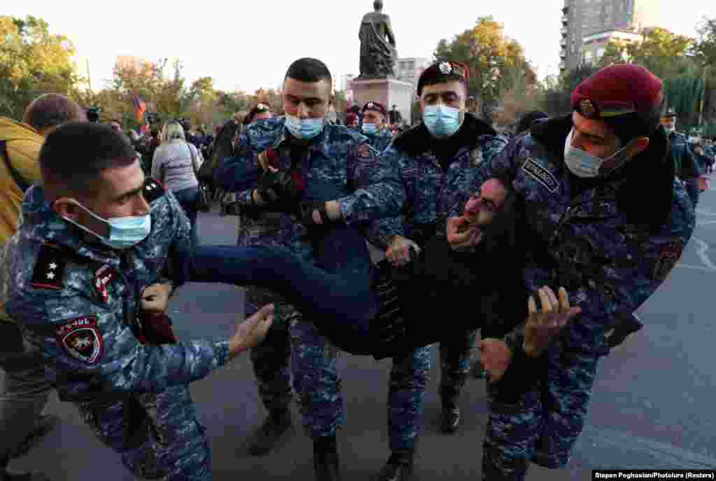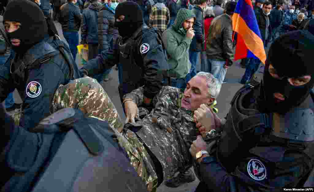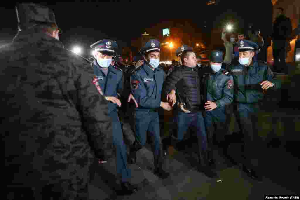 Several people were detained during the protests against the truce, which ended weeks of fighting with Azerbaijan, but sparked outrage with Prime Minister Nikol Pashinian for accepting the deal.