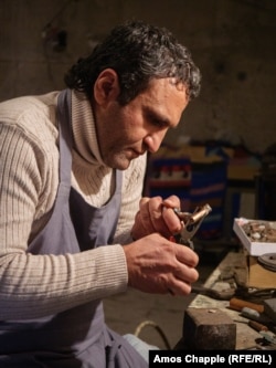 The bleak reality of the conflict was witnessed during RFE/RL’s time with Tadevosian. While shooting photos of the jeweler at work on October 27, he was suddenly called into the yard. Three brothers -- his childhood friends -- were there to say goodbye.