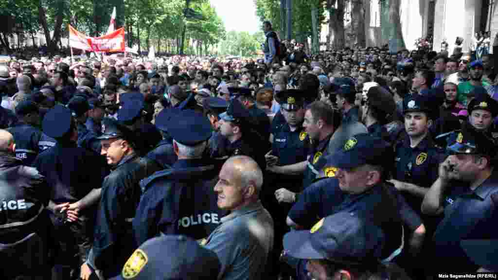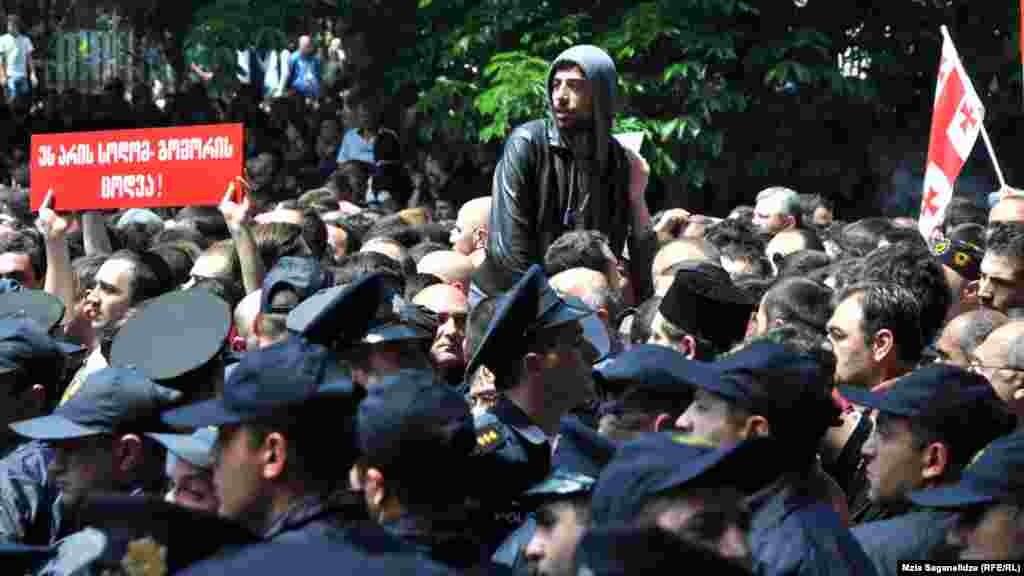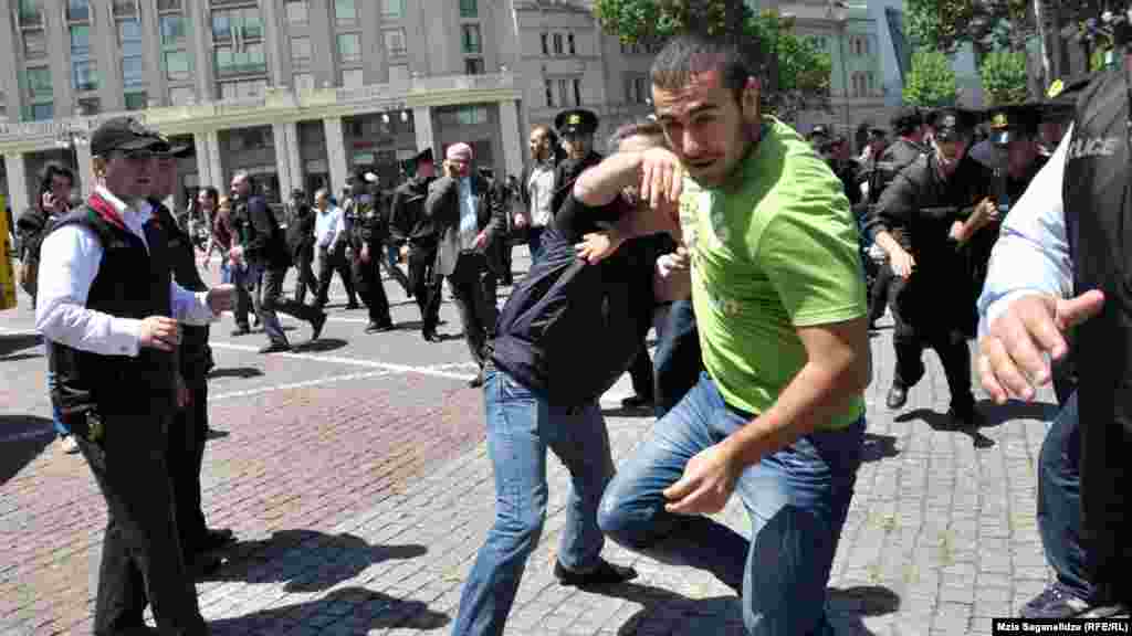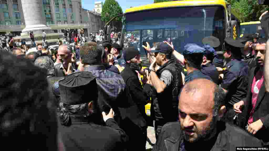 Thousands of antigay protesters led by Orthodox Christian clergy today prevented a gay-rights rally from taking place in Tbilisi. Thousands of protesters broke through a police cordon and charged the venue where the rally was to be held, forcing the rights activists to leave on buses under police protection. The gay-pride demonstration was scheduled to mark the International Day Against Homophobia. (RFE/RL's Georgian Service)