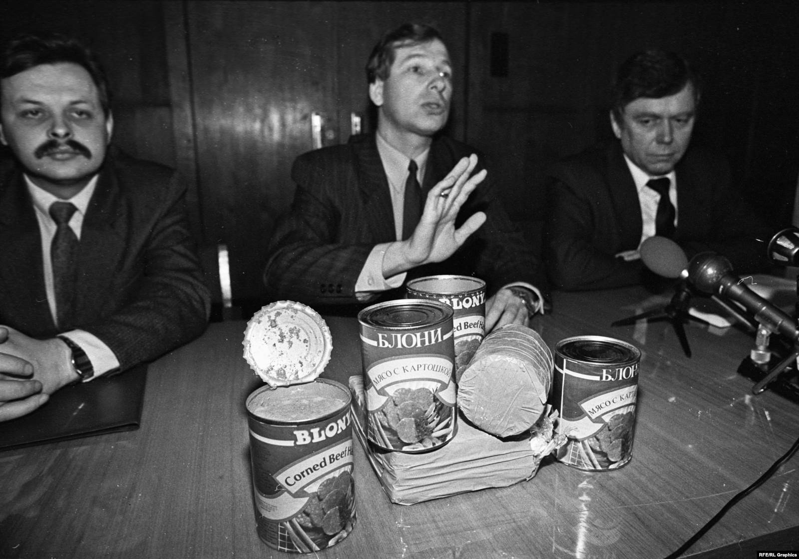 At the press conference in St. Petersburg a week later, Cherkesov sat at a table on which cans of the Blony brand corned beef in which the cocaine had been smuggled sat.