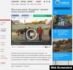 It described attendees brandishing Russian flags and matching white, blue, and red balloons lined up on a square to form the words "I Am A Patriot" in giant letters. (The report, initially available on the Moscow 24 website, appears to have been pulled down around midday on October 12, but you can see a screen capture of it here:
