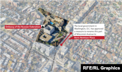WASHINGTON -- The local government for the city of Washington, D.C., has renamed the street where Russia’s embassy is located, honoring the memory of slain Russian opposition leader Boris Nemtsov in a move that Moscow has complained about.