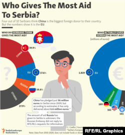 But while they were widely criticized for moving too slowly initially, EU countries eventually contributed tens of millions of dollars' worth of health-care and other emergency aid to Serbia to help it cope with the coronavirus.