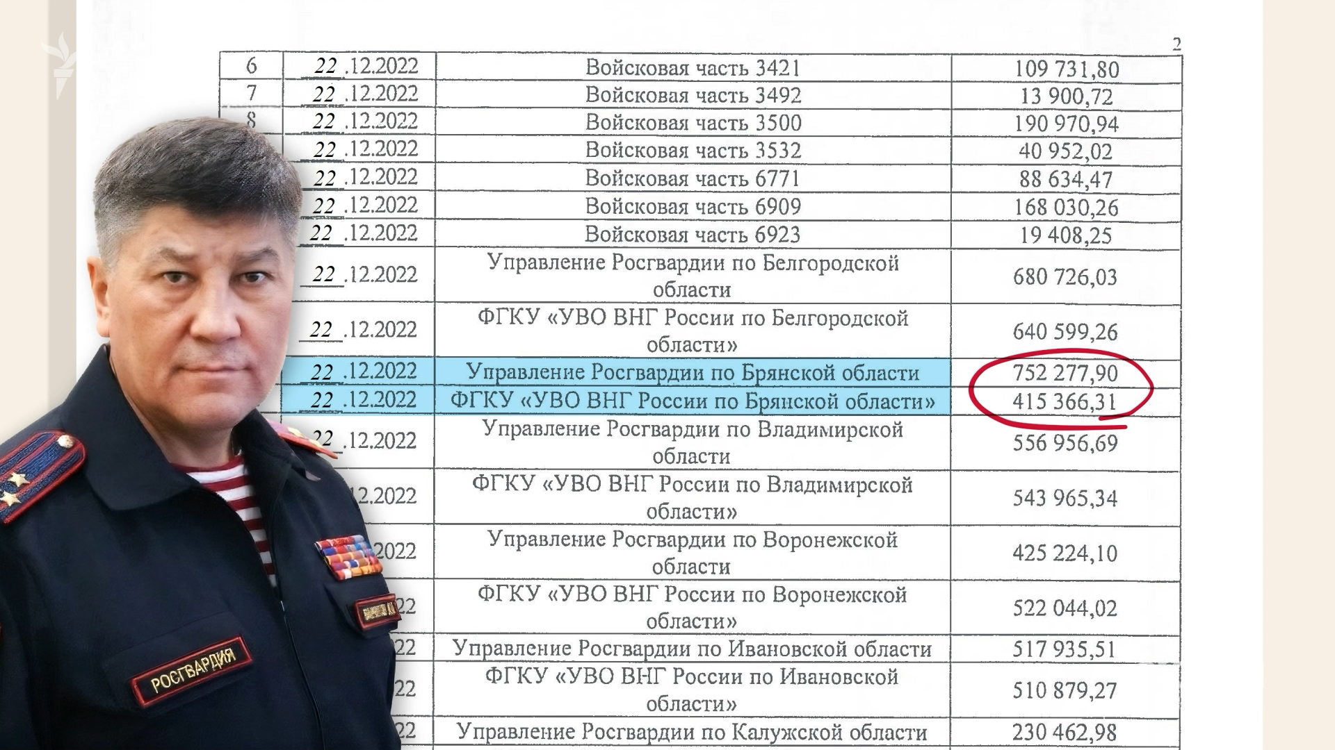 An Act of Provided Services states that a Bryansk-based Rosgvardia unit received services from AlfaStrakhovanie worth roughly 1.17 million rubles ($15,100) in 2022.
